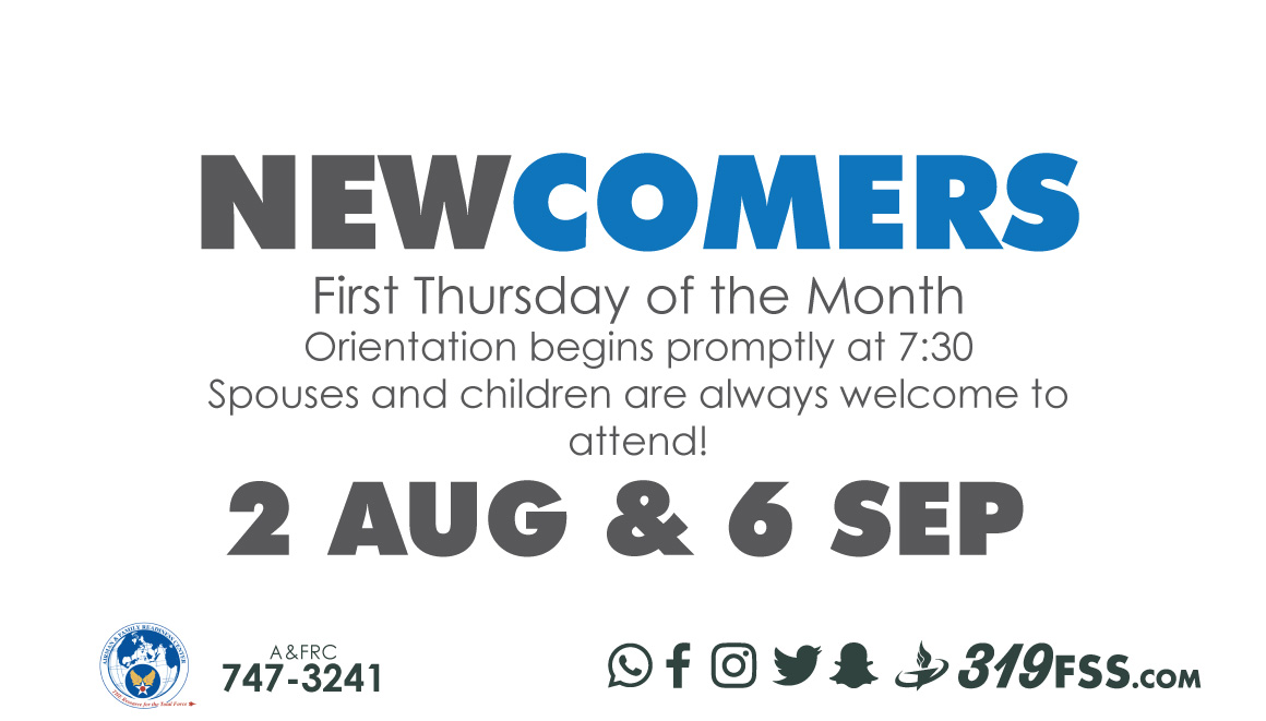 Newcomers Orientation will be held on the First Thursday of every month from 7:30 am to 3pm. All other dates have been cancelled.