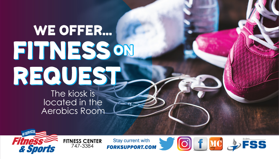 Fitness on Request has a large variety of classes including Aerobics, Cycling, Kickboxing, Pilates, and Dance. The Kiosk is located in the Aerobics Room at the Fitness Center.